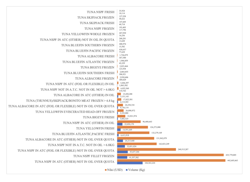 Perbedaan harga ini menunjukkan bahwa Indonesia lebih banyak bermain di segmen premium. Produk yang diekspor umumnya berupa tuna segar, fillet beku, loin, serta jenis yellowfin berkualitas tinggi.