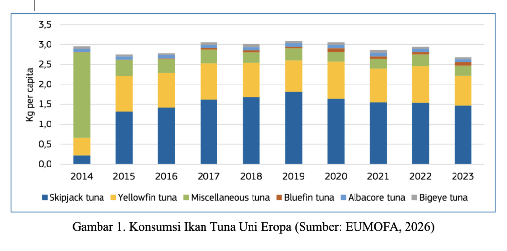 Gejolak global yang mengguncang rantai pasok pangan dunia saat ini pun berpengaruh besar dalam rantai pasok pangan. Namu, tuna justru muncul sebagai komoditas yang paling bertahan. Laporan EUMOFA Maret 2026 mencatat bahwa saat sektor perikanan lain terpukul pandemi, Brexit, dan perang Rusia–Ukraina, tuna tetap stabil bahkan menguat dalam struktur konsumsi Uni Eropa.